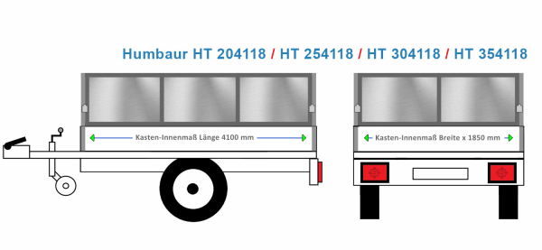 Anhängeraufbau für den Anhängertyp Humbaur HT 204118 als Blech-Bordwand Ausführung.