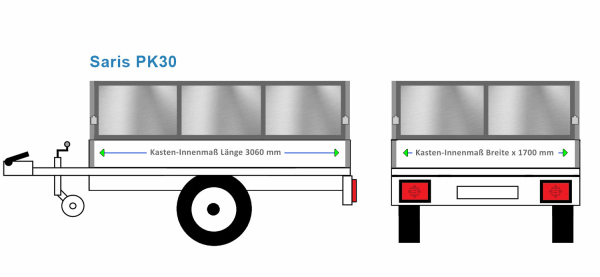 Anhängeraufbau für den Anhängertyp Saris PK30 als Laubgitter / Wellengitter Ausführung.